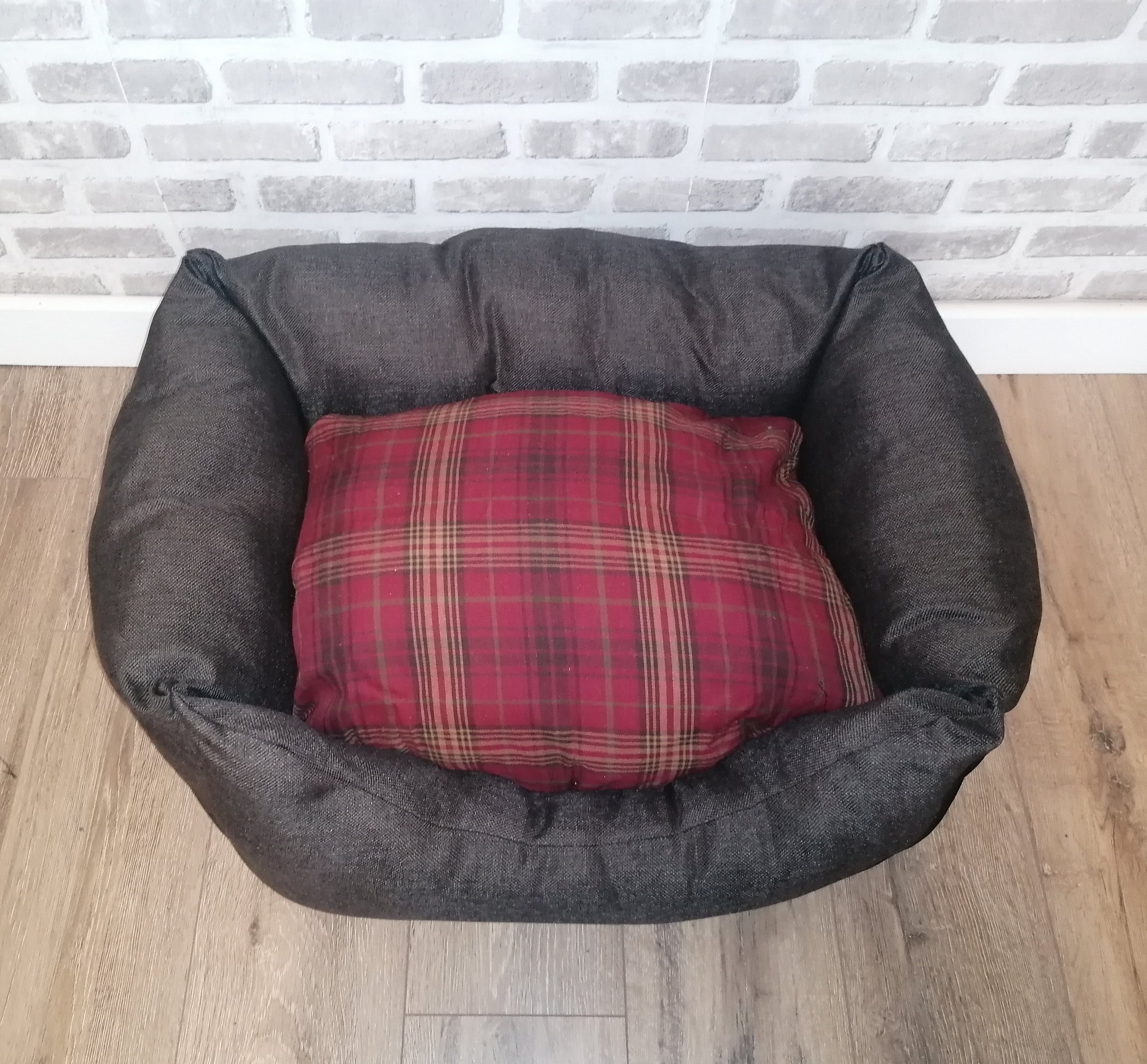 Small Brown/Red Tartan Dog Bed With Removable Inner Cushion